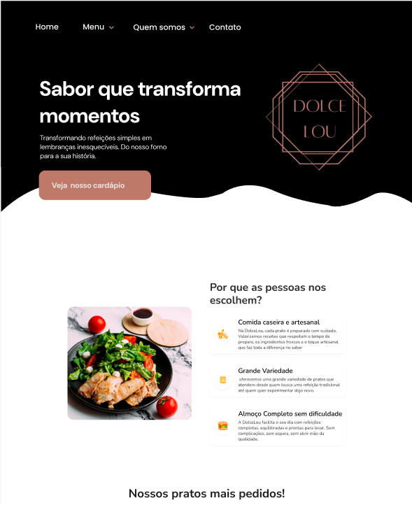 Landing Page responsiva com cardápio integrado.